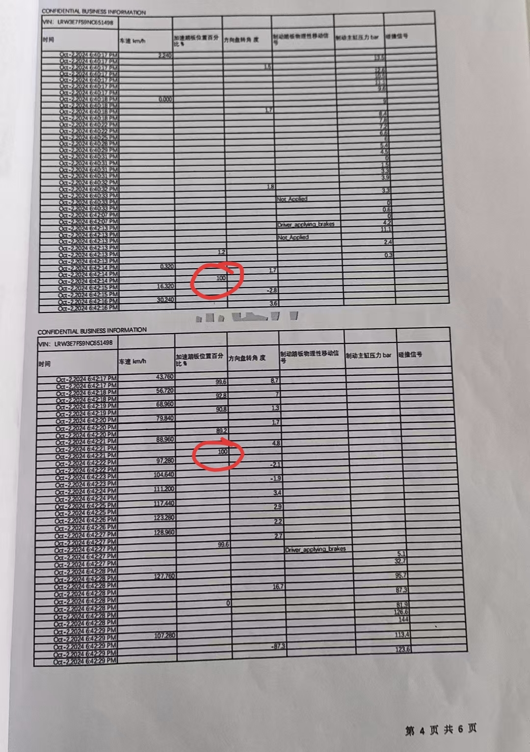 车辆事发前后数据显示 事发前14秒两次加速至100%
