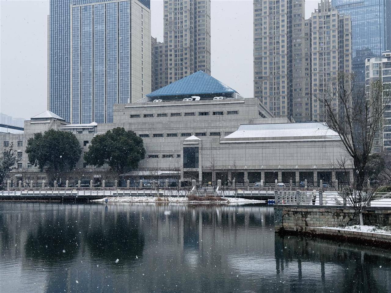 雪中的武汉博物馆与后襄河公园的静谧的水面,相映成趣,就像一幅凝固的画框,定格在此处。