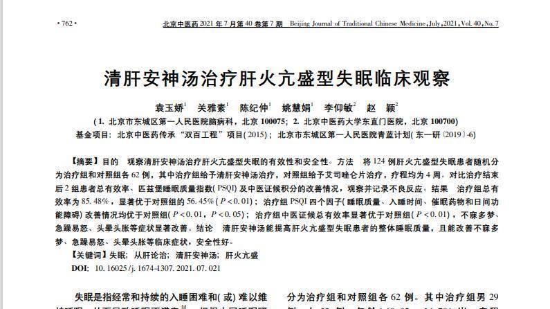 参考资料[1]袁玉娇.清肝安神汤治疗肝火亢盛型失眠临床观察[J].北京中医药驰赢策略,2021