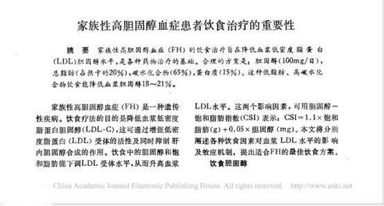 参考资料[1]赵清.家族性高胆固醇血症患者饮食治疗的重要性[J].国外医学.心血管疾病分册通弘网 ,1994
