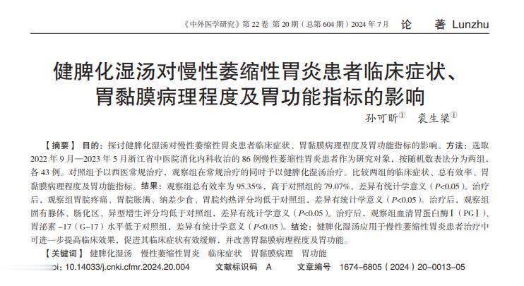 参考资料[1]孙可昕达宝优配,裘生梁.健脾化湿汤对慢性萎缩性胃炎患者临床症状、胃黏膜病理程度及胃功能指标的影响[J].中外医学研究,2024